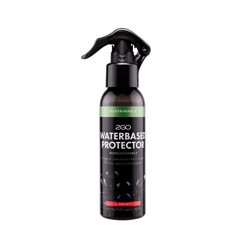 2GO Waterbased Protector er en kraftfuld imprægneringsspray, der kan bruges på alle materialer og beskytter effektivt mod snavs og regn. Forlæng levetiden på dine sko med 2GO imprægnering For at opnå den bedste beskyttelse på dine sko, sneakers eller støvler, bør du benytte 2GO Waterbased Protector regelmæssigt. Denne imprægnerings spray kan bruges på alle materialer, og er med til effektivt at beskytte dit fodtøj mod regn og snavs. Waterbased Protector er vandbasseret, biologisk nedbrydelig, og emballagen 100% fri for flourforbindelser. 2GO Waterbased Protector har mange egenskaber – Kan bruges på alle materialer – Effektiv beskyttelse mod regn og snavs – Vandbaseret og biologisk nedbrydelig – Emballagen er 100% genanvendelig 2GOs serie af plejeprodukter til sko består af 4 trin, hvor af at 2GO Waterbased Protector er trin 3, som giver beskyttelse: 1: Renser. (2GO Rense kit) 2: Plejer. (2GO Suede Renovator) & (2GO Leather Lotion) 3: Beskytter. 4: Opfrisker. (2GO Refresh) & (2GO Shoe Deo) Indeholder 250 ml.