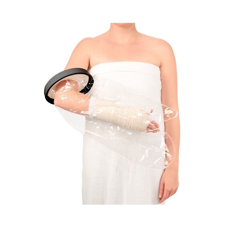 Badebeskytter til underarm – hold gips og bandage tør i badet Har du gips eller bandage på underarmen og skal i bad? Denne praktiske badebeskytter gør det nemt og trygt at tage et brusebad, uden at vand trænger ind. Den elastiske lukning slutter tæt om armen og forhindrer vand i at komme ind i overtrækket. Badebeskytteren er fremstillet i slidstærkt plast og kan bruges flere gange. Den er let at tage på og af og ideel til midlertidige skader, operationer eller sårpleje, hvor armen skal holdes tør. OBS: Ikke egnet til svømning eller brug ved åbne, utildækkede sår. Fordele: Beskytter gips og bandager på underarmen mod vand Elastisk lukning for sikker og tæt pasform Genanvendelig og slidstærk Nem at tage på og bruge selv Denne badebeskytter fås også hvor den dækker hele armen. Se den her. Mangler du flere hjælpemidler? Udforsk vores mange andre hjælpemidler til badeværelset eller se hele sortimentet af hjælpemidler her..