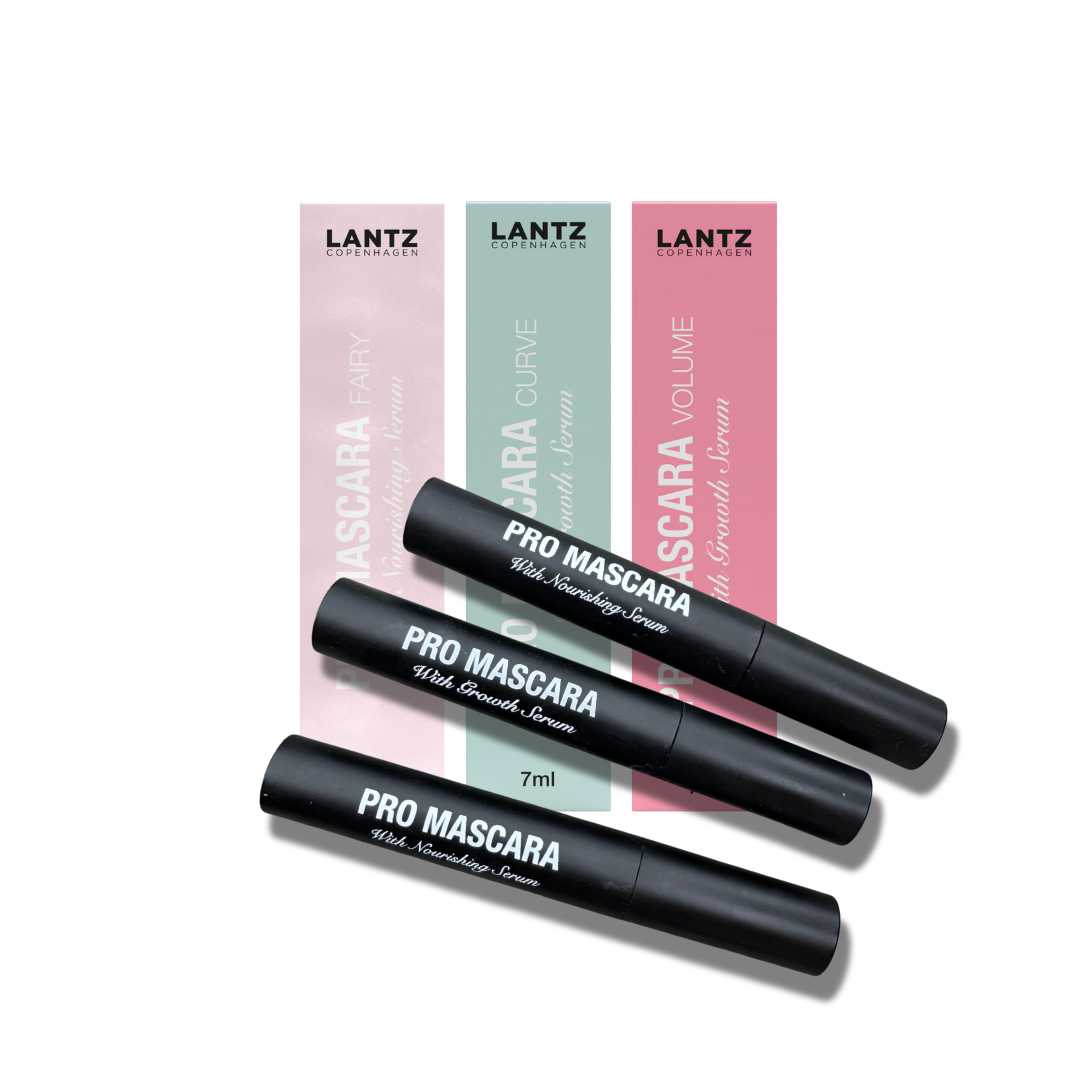 Oktober Mascara Pakker.Alle Lantz Copenhagen mascaraer er parfumefri, plejer vipperne med nærende serum og fjernes nemt med varmt vand (tube-teknologi). Perfekt til selv sensitive øjne. Denne pakke giver dig et naturligt svaj, smuk bue og fyldig volumen i én pakke.
