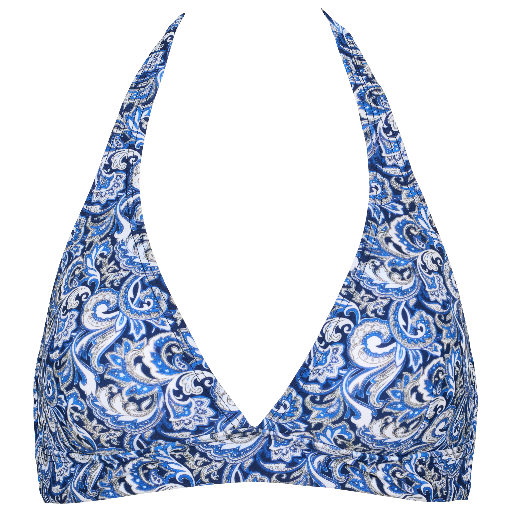 Den smukke Amber bikinitop kombinerer det lækreste materiale med et iøjnefaldende paisley design. Den er fremstillet i et blødt og behageligt materiale med let lining, der giver en flatterende pasform og ekstra støtte. Toppen har en smuk halterneck-udskæring og lukkes elegant med et spænde på ryggen. Perfekt til solrige stranddage eller afslappende poolture.